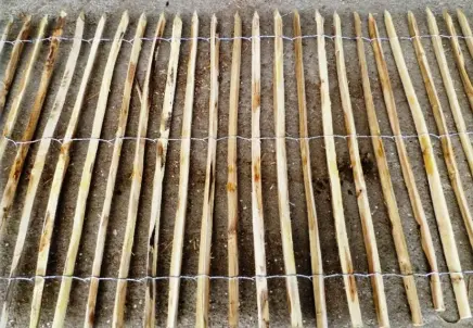 Les ganivelles sont composées de piquets robinier (acacia) sciés ou fendus mais également de piquets en châtaignier fendu.